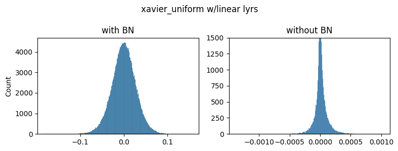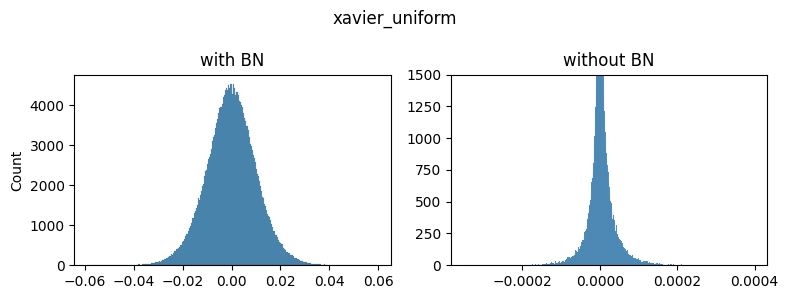 Note: xavier_normal produced very similar shapes/scales as xavier_uniform so we don’t show it.